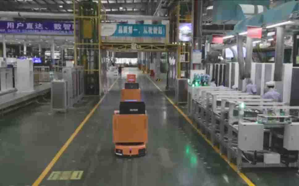 为车载冰箱物流配送打造的智能解决方案,,,包含产中物流通过潜伏举升AMR搬运至线边,,,,产后成品物流智能仓储,,流程包含产中物流智能齐套入库,,,,线边安灯叫料AMR智能配送至线边,,,,成品入库、、、、出库,,通过无人堆高车机器人,,智能仓储管理替代人工作业管理,,,实现更高存储、、、更高效率、、、更具柔性化的解决方案。。。